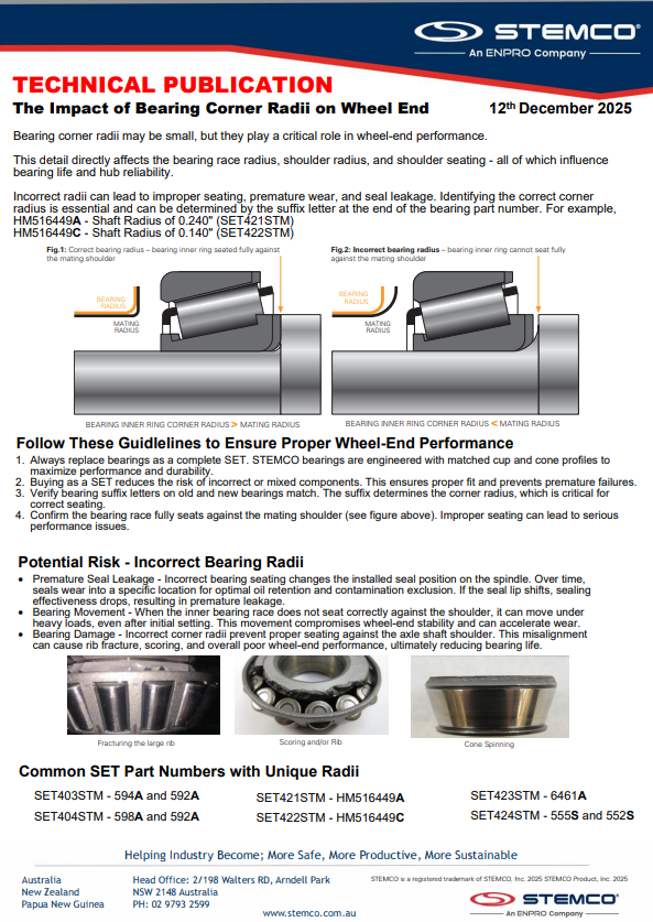 STEMCO Australia offers the best priced bearing and seal kit option on the market – no compromise on quality. One Kit per wheel end and one part number – makes it simple. Trusted components from the most respected wheel end components manufacturer.