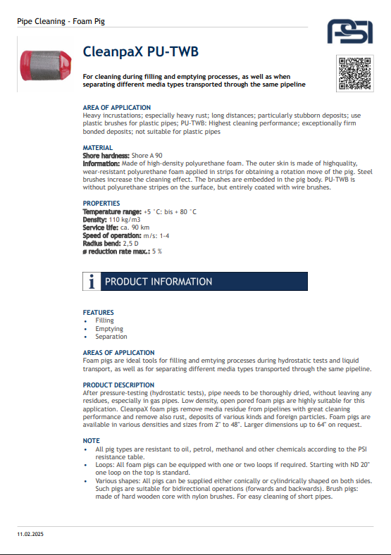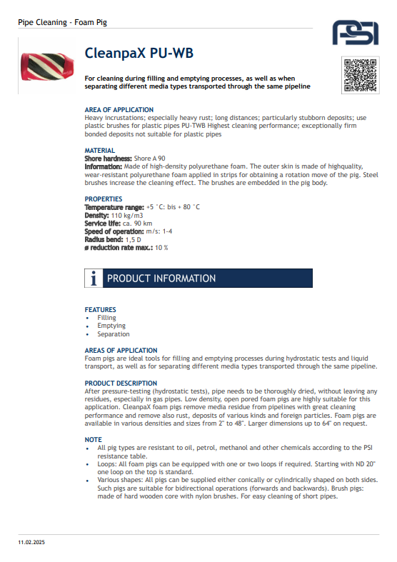 The CleanPax Flexible Pig is designed for efficient and reliable cleaning of pipelines across various industrial applications. Its flexible construction allows it to navigate bends and diameter changes with ease, ensuring thorough removal of deposits, debris, and residues without damaging the pipe interior. Engineered for versatility and durability, this solution is perfect for industries requiring high standards of cleanliness and productivity.