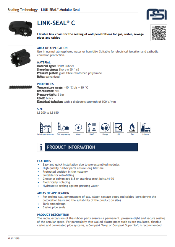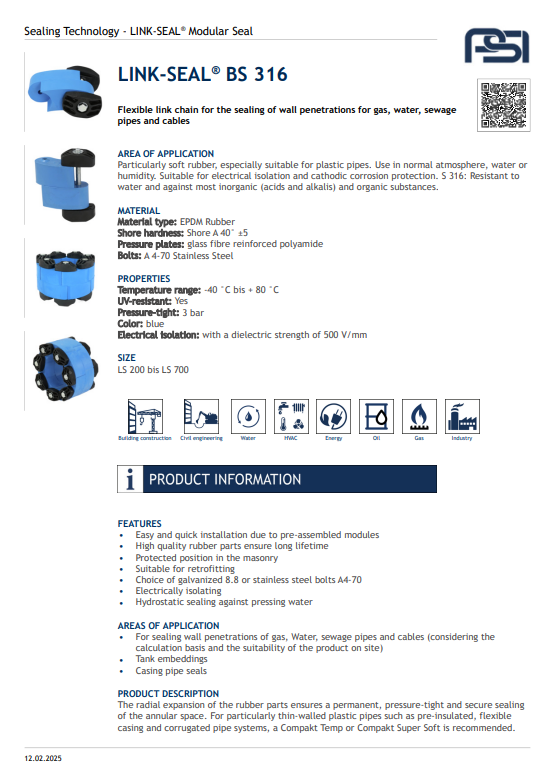 The radial expansion of the rubber parts ensures a permanent, pressure-tight and secure sealing of the annular space. For particularly thin-walled plastic pipes such as pre-insulated, flexible casing and corrugated pipe systems, a Compakt Temp or Compakt Super Soft is recommended.