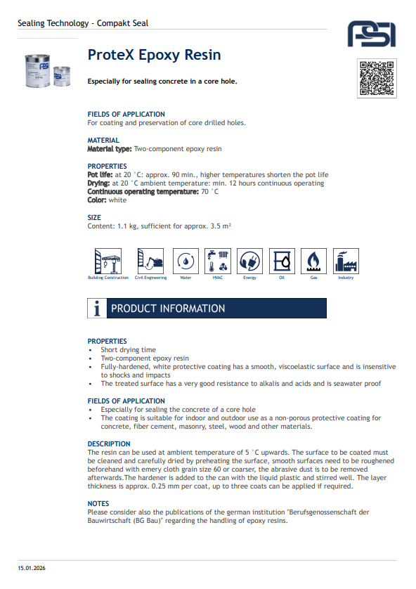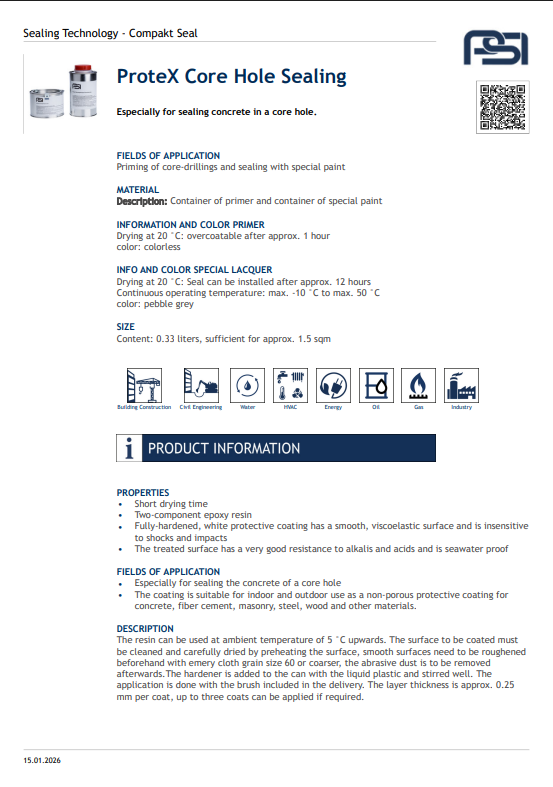 The Protex® Core Hole Sealing system provides a quick, reliable solution for sealing unused core drill holes in concrete walls. Made from durable, pressure-resistant materials, it ensures a watertight and gas-tight seal, preventing infiltration and protecting structural integrity. Easy to install without special tools, it’s ideal for civil engineering and utility projects.